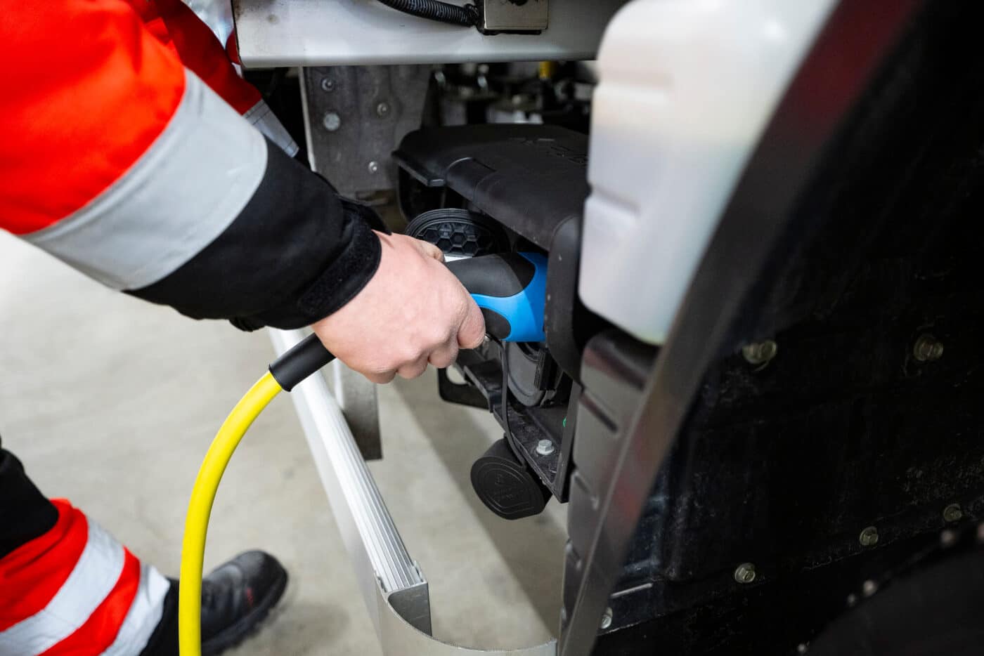 “However, my comfort in the cabin has been ensured, I always have a pleasant warmth,” laughs Sami Määttä. The optional Performance package is responsible for this and for increasing the range. It consists of seat heating, steering wheel heating and heated windscreen. This means that the normal cab heating can remain completely switched off depending on the weather or, as in this case, only run at economical 18 degrees. “This is much less than we had to adjust in our diesel truck to get it warm,” confirms the Finn. “What I also really like is that charging is so easy, it takes place directly in our hall and I can do other things in the meantime. That’s much more comfortable than standing outside at a petrol station in the cold.”