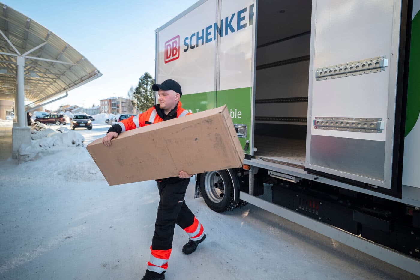 Are you sure? “Yes, I absolutely wanted us to try this here in Kuusamo and refute this prejudice that you can’t start with an electric truck in such weather,” confirms Raino Mourujärvi, who originally came from the region himself and is quite familiar with the slightly tougher conditions. The 45-year-old works at DB Schenker in Oulu, just under three hours southwest of the city, and is responsible for the whole of Lapland from there. Once a month, he personally visits the offices in Kuusamo, Kemi and Rovaniemi. His area of responsibility includes the care of the properties, vehicles and personnel at the locations. He is also a great enthusiast of electric mobility. His company car also drives purely electrically and integrating sustainable drive systems into the fleet as best as possible is his personal concern: “When I learned that new eCanter vehicles were soon available to the DB Schenker fleet in Finland, I immediately took action!”