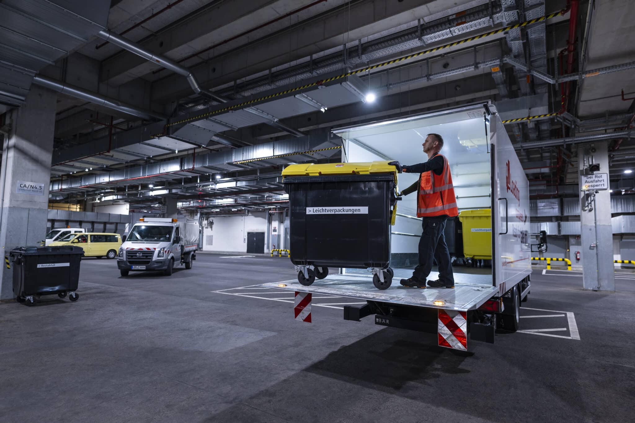 For one and a half years now, Berlin Brandenburg Airport GmbH has been relying on electromobility as part of its sustainability strategy for the handling of its internal waste and disposal logistics – as it turns out, this is exactly the right job for the FUSO eCanter 7C18e.
