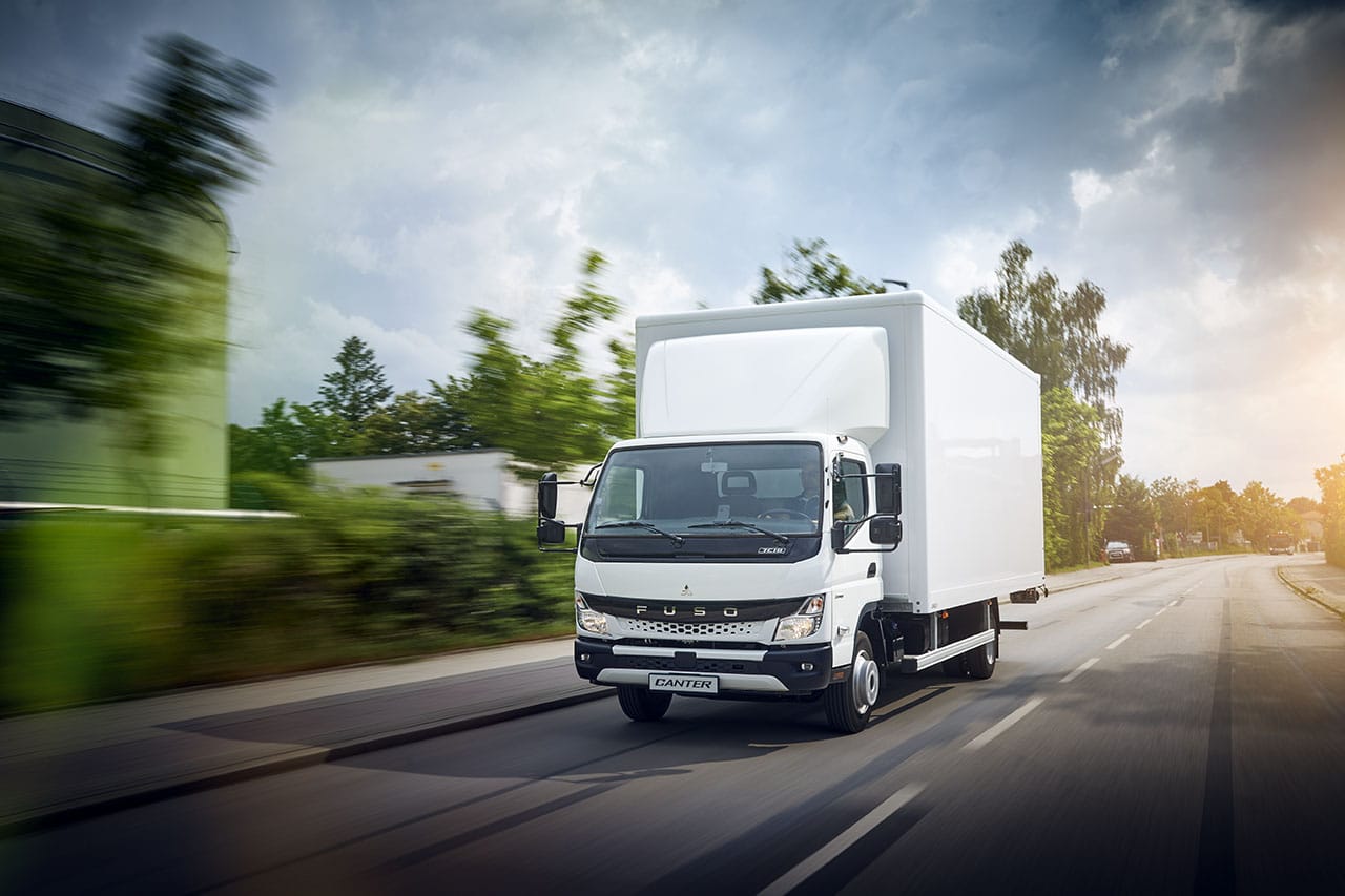 Für den FUSO Canter kein Problem. Mit Leichtbau-Koffer, Kühlaufbau, Koffer mit Ladebordwand, Curtain-Sider oder mit Plane-Spriegel-Aufbau ausgerüstet, stürzt er sich zuverlässig mit ins Getümmel – denn als kompakter, wendiger und komfortabler Leicht-Lkw mit praxistauglicher Ausstattung ist er für die Citylogistik wie gemacht.